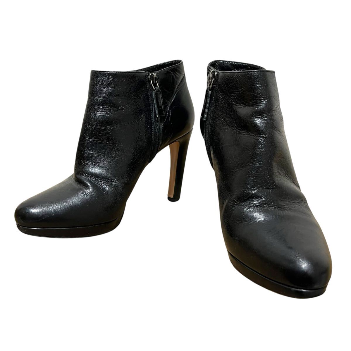 - ※BT3 PRADA プラダ ヒールブーティ ブラック レザー 本革 イタリア製 表記37.5 23.5〜24cm相当