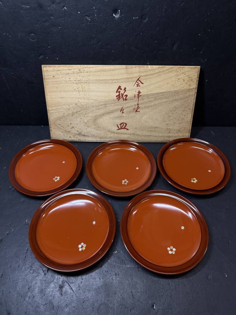 - ★コレクター必見 会津塗 銘々皿 五枚 漆器 漆塗 漆芸 共箱 和食器 コレクション GT884