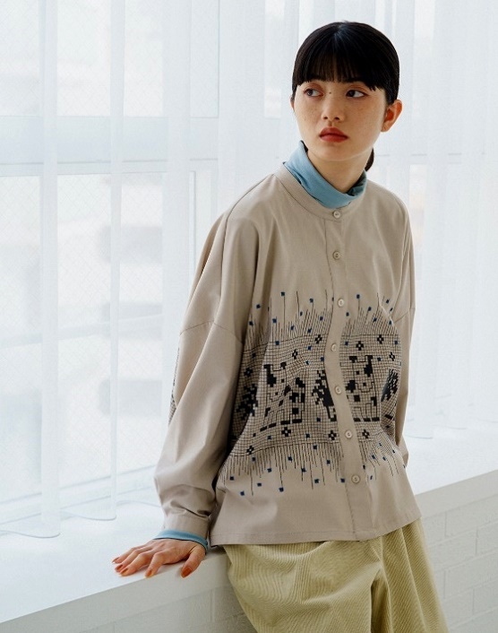 - 新品 marble SUD ブルテリア刺繍 バンドカラーワイドシャツ マーブルシュッド 犬柄