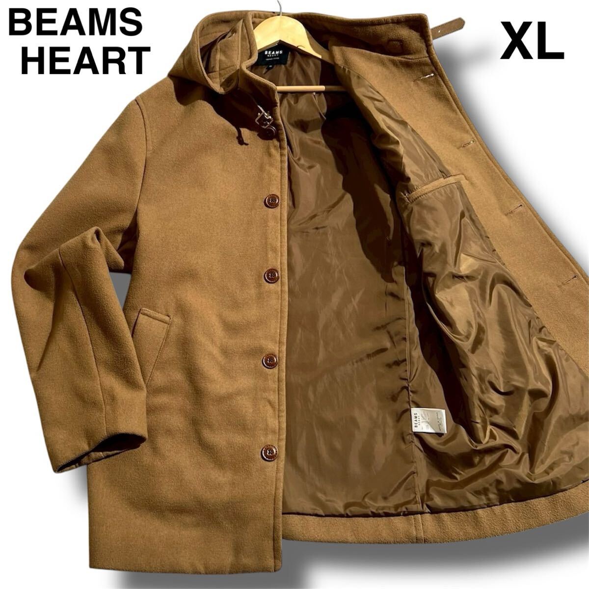 - 美品/XL◆2way ビームスハート BEAMS キャメルカラー コート レザー ベルト フード着脱 ブラウン メンズ 極暖 秋冬 アウターマリンコート