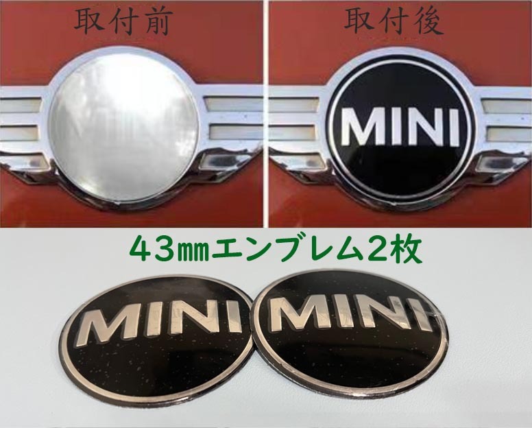 - ☆43㎜×2枚☆エンブレム☆ミニクーパー R50 R56 リア フロント 裏面両面テープ付 湾曲加工済み 補修 リペア