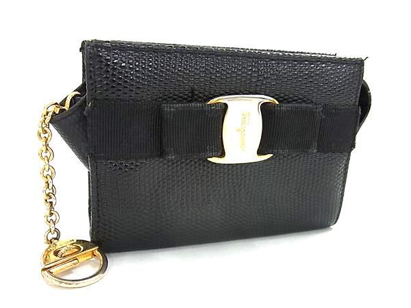 - Salvatore Ferragamo フェラガモ 223057 ヴァラリボン リザード型押しレザー ポーチ マルチケース 小物入れ ブラック系 DK7337
