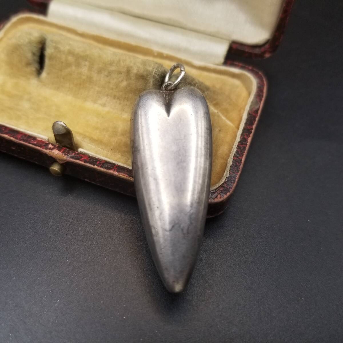 - シンプル 装飾なし ヴィンテージ ロング パフィーハート チャーム ペンダントヘッド シルバープレート ぷっくり感 ネーム彫金 C. L? Y25-D