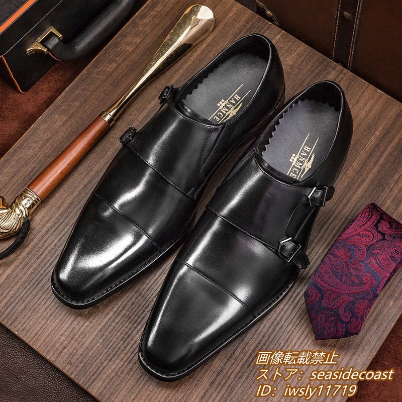 - 入手困難■本革 ダブルモンクストラップ 職人手作り 高級牛革 ビジネスシューズ メンズ レザーシューズ 革靴 フォーマル ブラック 27.0cm