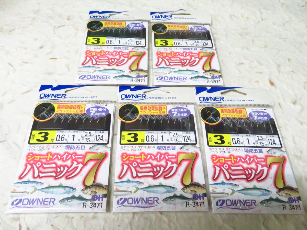 - オーナー ショートハイパーパニック7 3号 5枚セット R‐3471 堤防五目 豆アジ サバ タナゴ メバル イワシ カワハギ