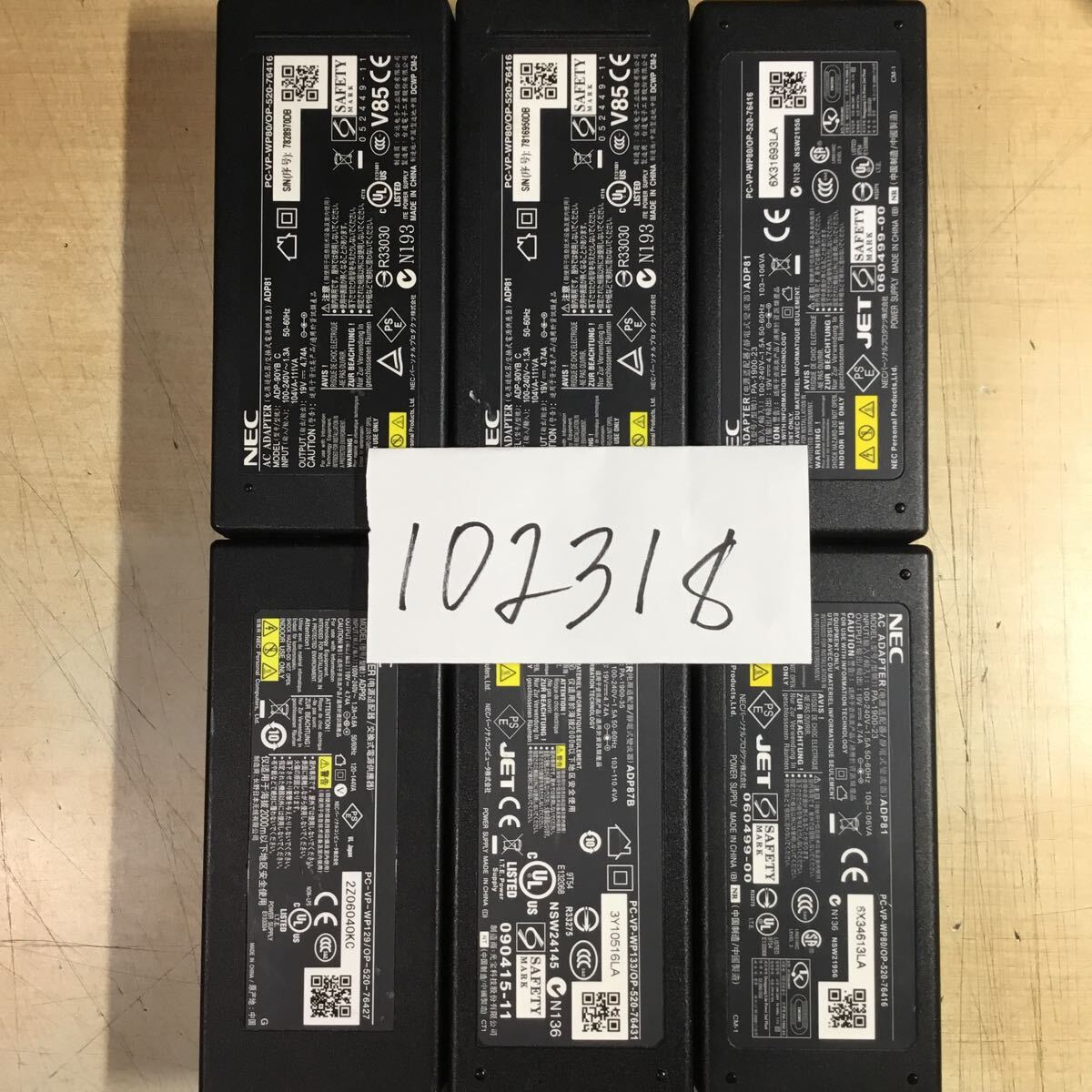 - 【送料無料】(102318E) 6個セット NEC AC Adapter ADP81など 19V-4.74A 純正品 ACアダプター メガネケーブル付 中古品