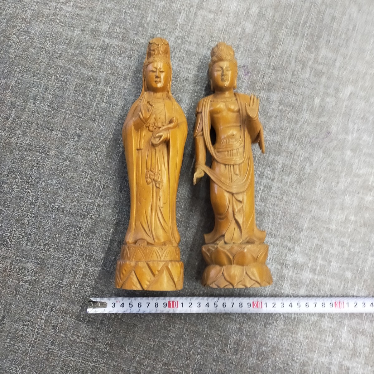 - す3654 立像 観音菩薩 木製 在銘 正峯 松原 2点 まとめ売り