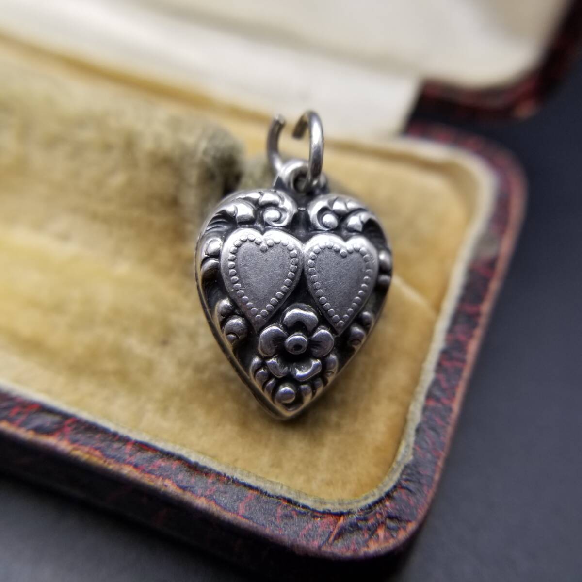 > WWII期 ヴィンテージ スウィートハートジュエリー ダブルハート 勿忘草 チャーム 925 シルバー ペンダント 銀 ネーム彫金 Jonkins Y25-D