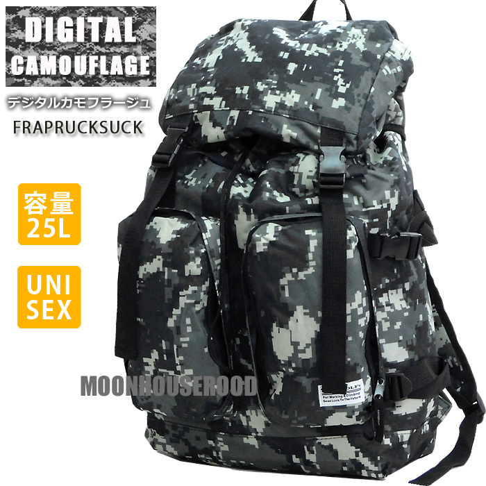 - 送料無料 ミリタリー柄 大容量 リュック メンズ レディース フラップ リュックサック デジタル カモフラージュ デジカモ 迷彩柄グレー□