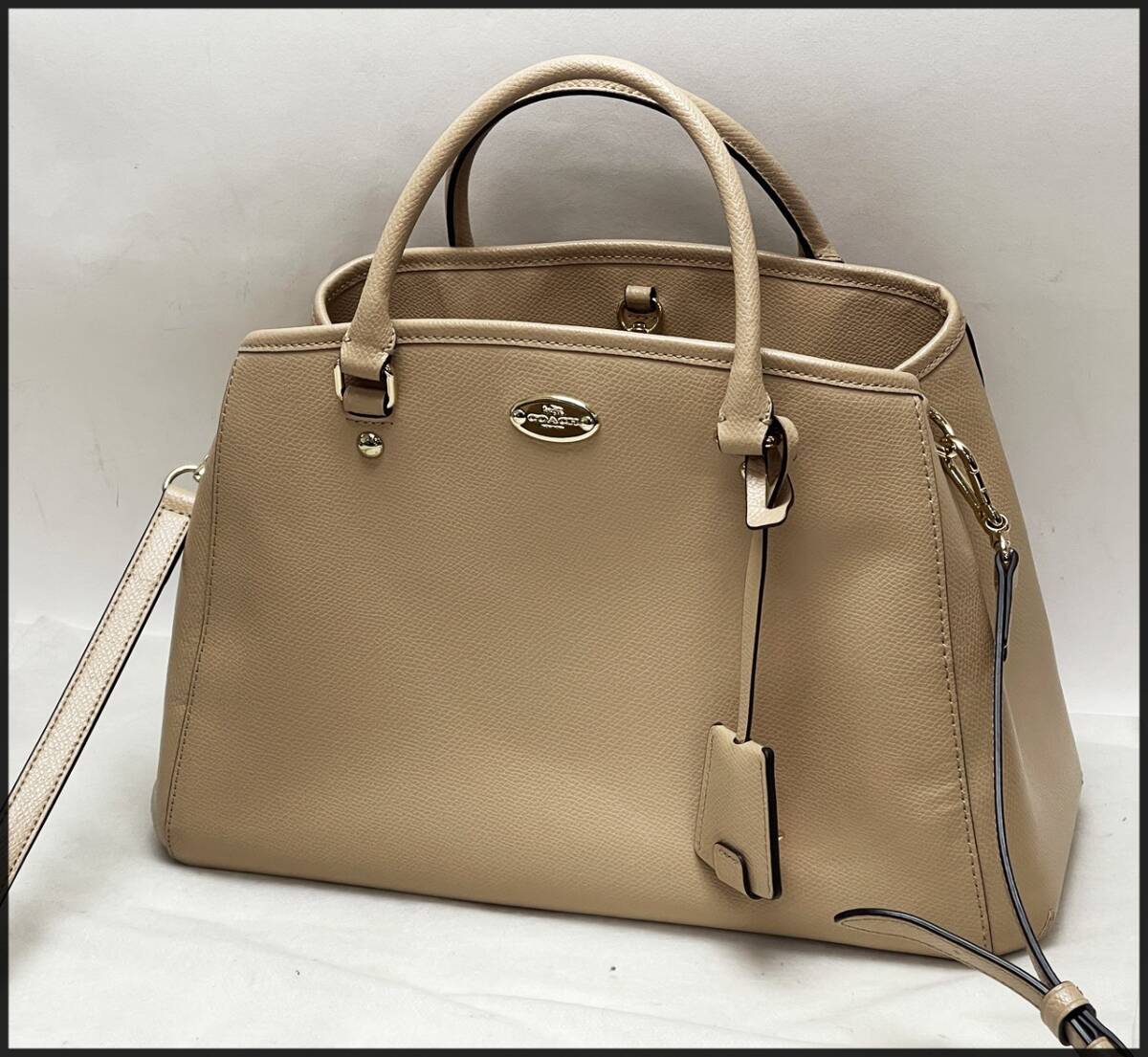 - 美品 コーチ レザー 2Wayハンドバッグ キーチャーム付 ショルダーバッグ ベージュ キーリング 領収書可