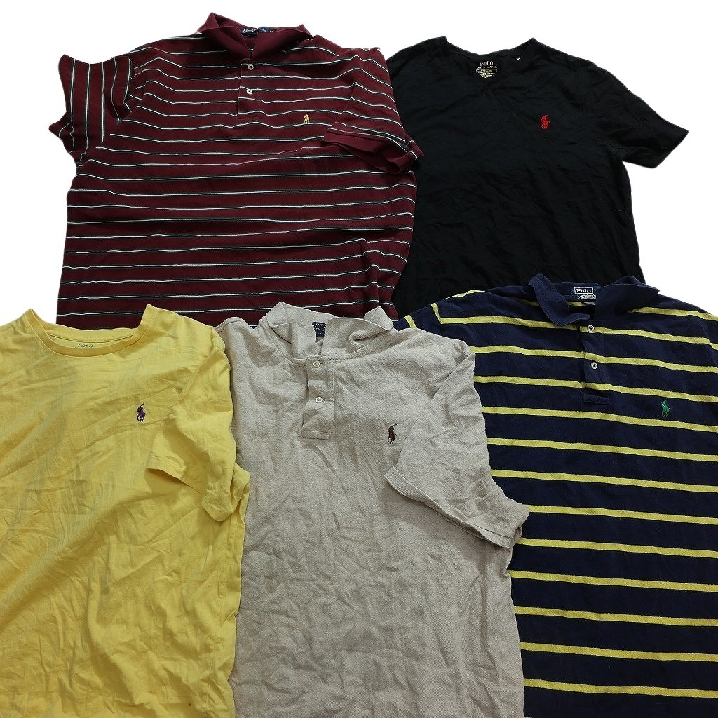 > 【訳あり】 古着卸 まとめ売り ラルフローレン 半袖Tシャツ・ポロシャツ MIX 33枚セット (メンズ ) ボーダー ワンポイント 中古古着 WA3686