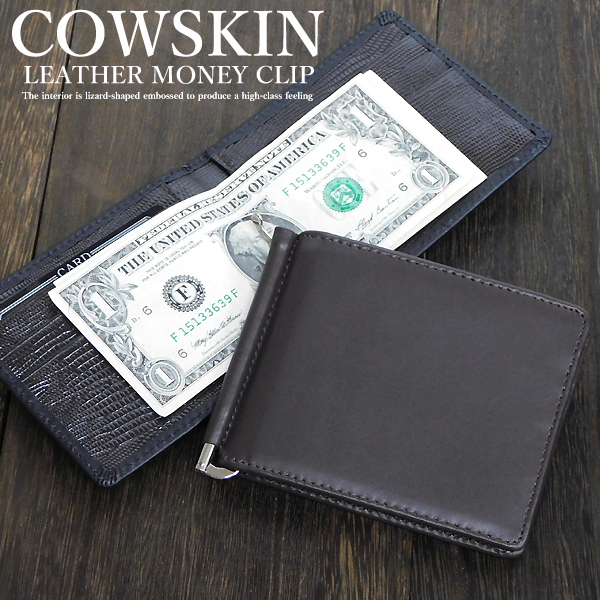 - 送料無料 マネークリップ メンズ 牛革 メンズ 財布 インナー リザード型押し 二つ折り財布 カードケース パスケース ブラウン 新品□