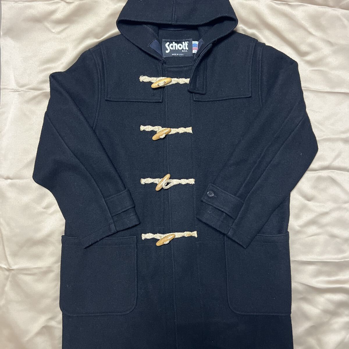 - schott ダッフルコート ブラック ロングコート ヘリンボーン コートサイズL