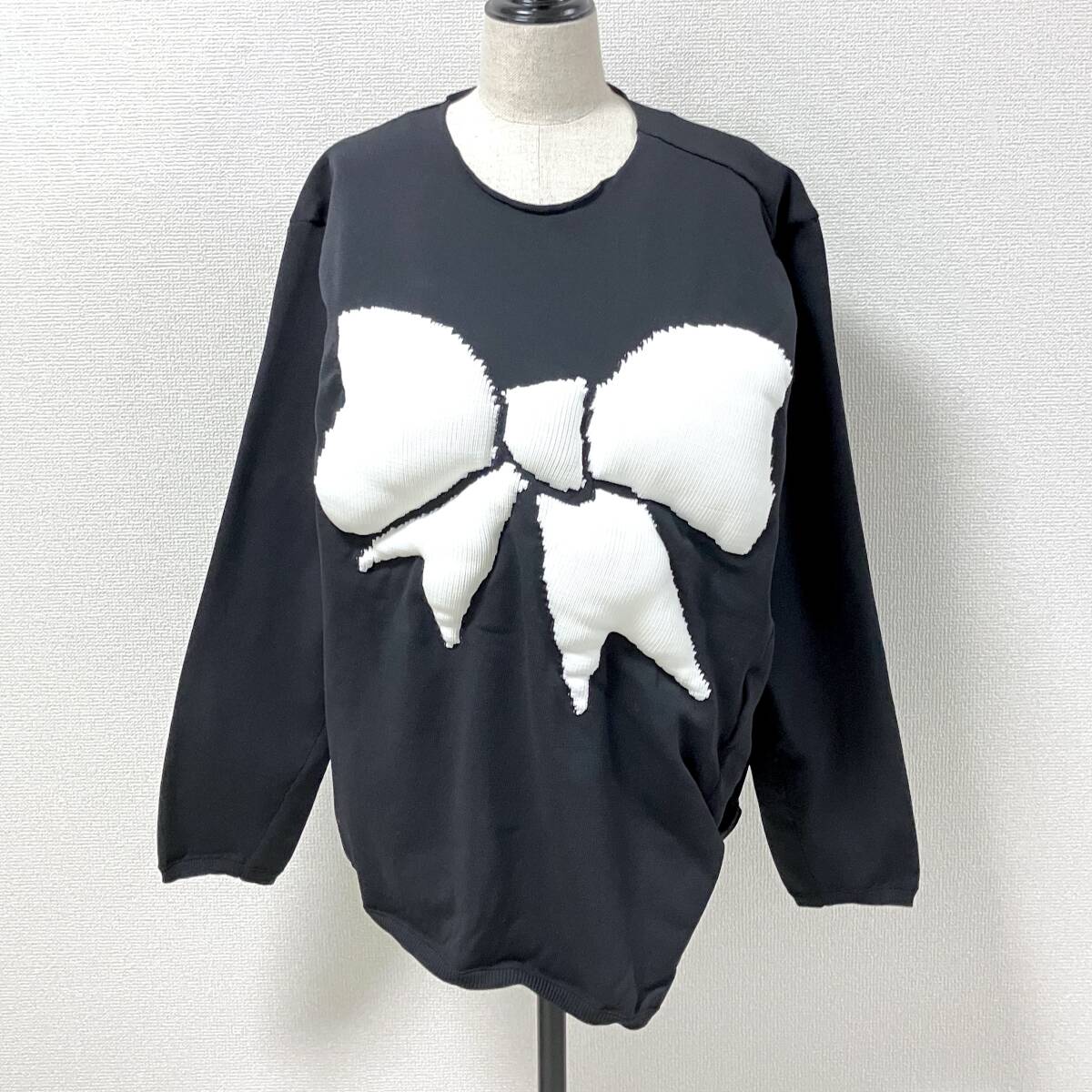 > AD2021 COMME des GARCONS 立体 リボン ポリエステル 変形 ニット セーター 黒白 Mサイズ コムデギャルソン archive 5090240