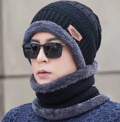 - 送料込 ニット帽 マフラー 2点セット 裏起毛 防寒 暖かい 男女 アウトドア 防寒 ニット帽 ネックウォーマー 首元あたたかい