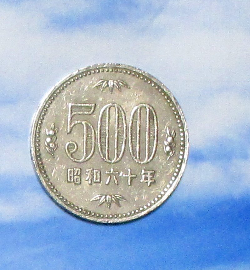 - (A) 昭和60年銘 「500円 白銅貨」縁に「NIPPON ◆ 500 ◆」の文字