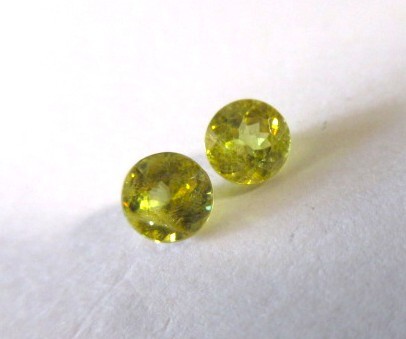 イエローのスフェーンの1ペアです。赤やグリーンのファイアーがキラキラしています。透明感とテリがあります。非加熱。