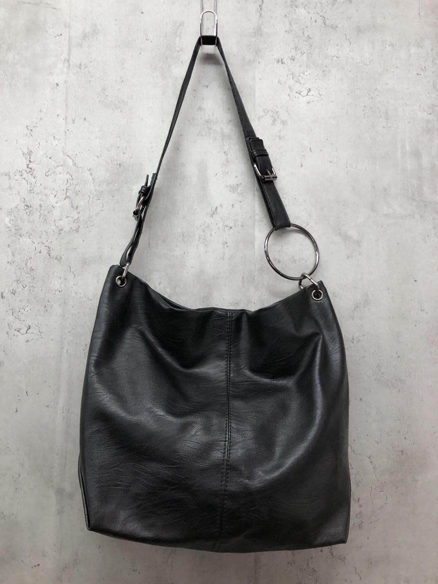 > ゆうパケットOK IMARI イマリ リング デザイン フェイクレザー ショルダー バッグ 黒 ■■ ☆ fjc1 レディース