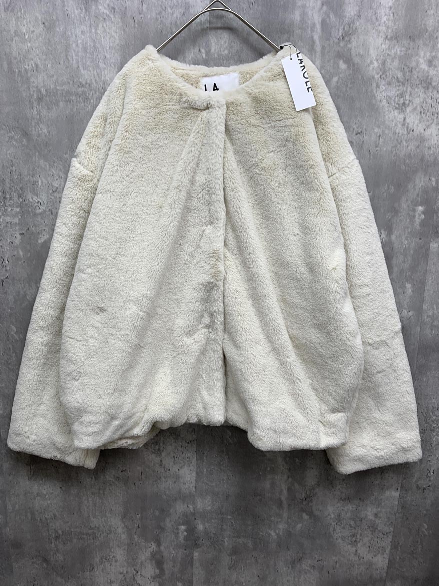 > 新品 LAKOLE ラコレ 135667 ノーカラーファー ブルゾン ジャケット sizeM/アイボリー ◆■ ☆ fjc1 レディース