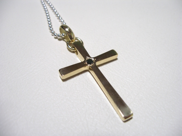 - 仁尾彫金『一つ星ブラックダイヤゴールドクロス』ハンドメイド421b