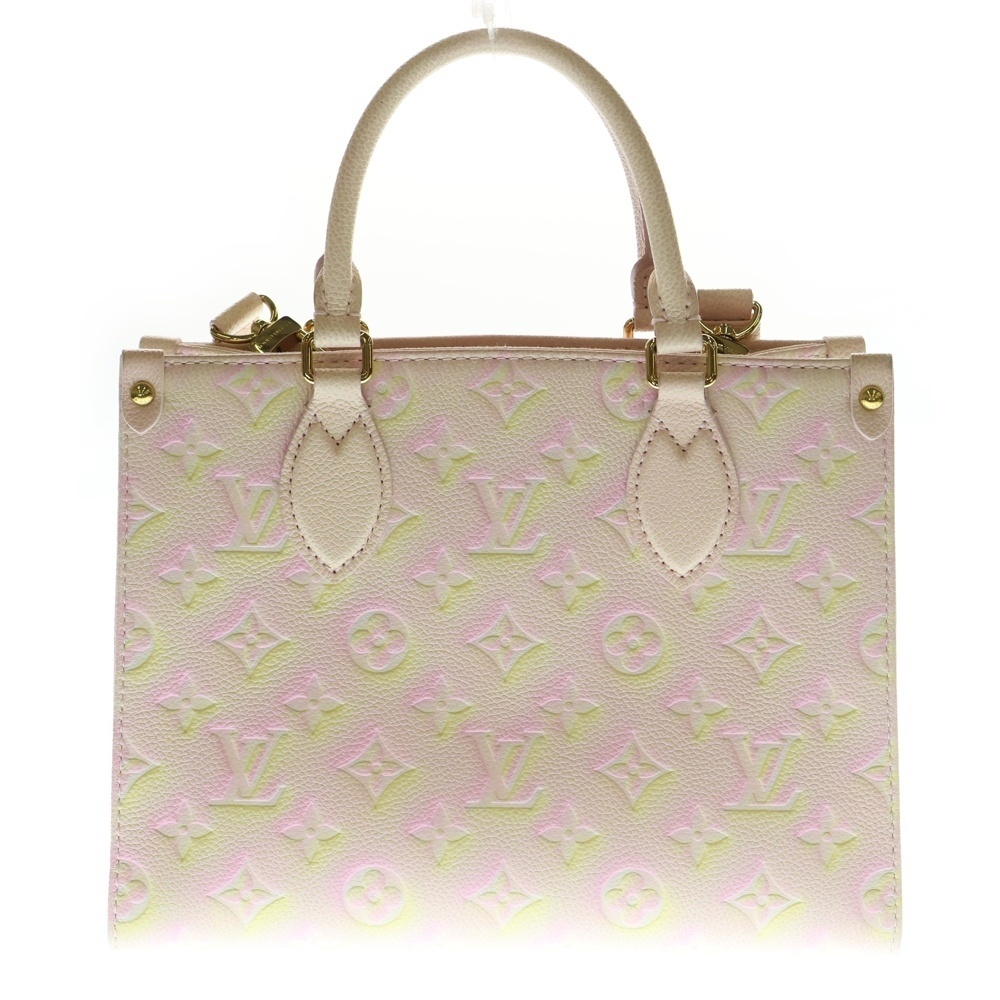 > ルイヴィトン オンザゴーPM モノグラム アンプラント エンボスレザー 2WAY ハンド ショルダー トートバッグ ゴールド金具 ピンク M46168