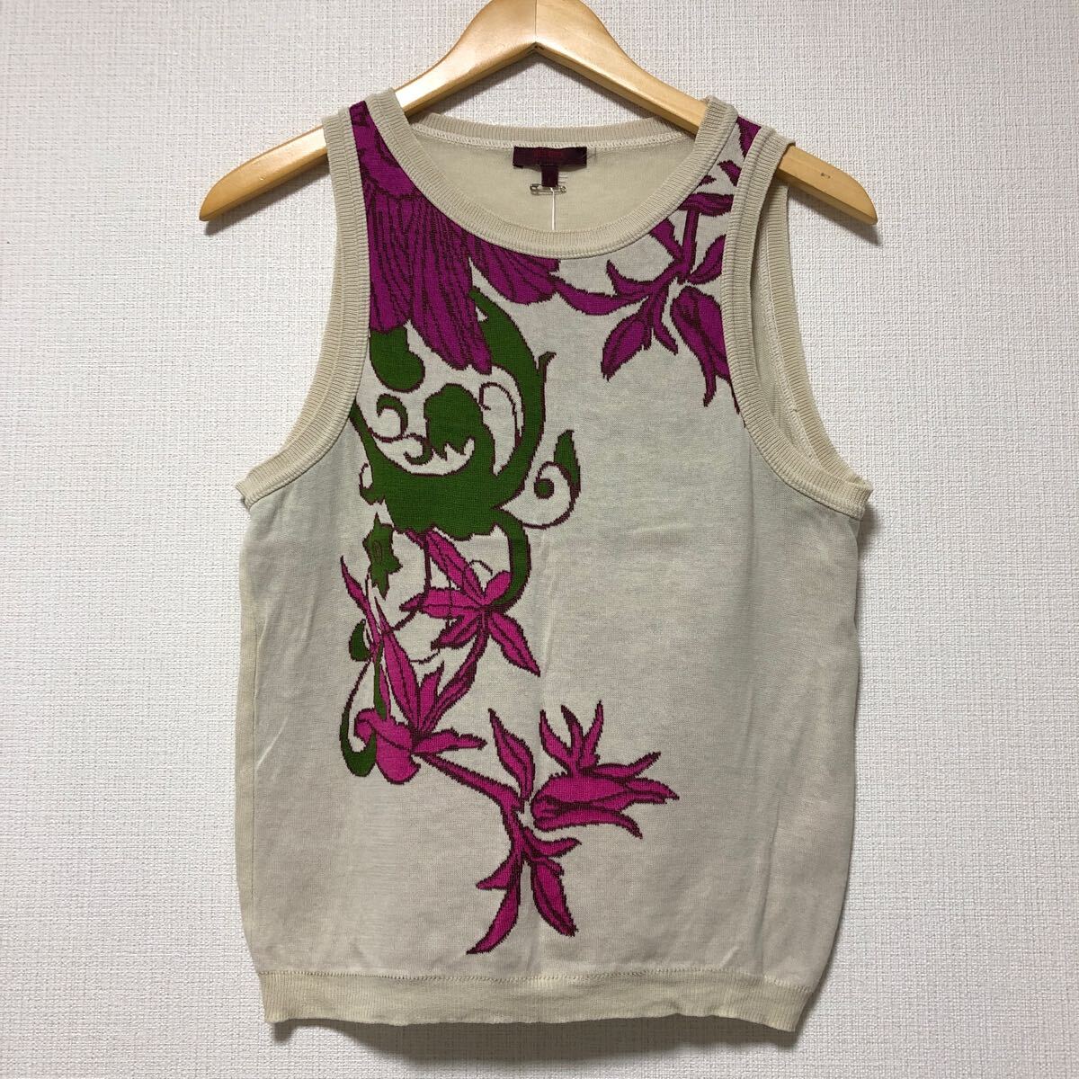 - (k) KENZO PARIS ケンゾー 花柄 ノースリーブ ニット ベスト イタリア製 レディース トップス L ベージュ オフホワイト コットン