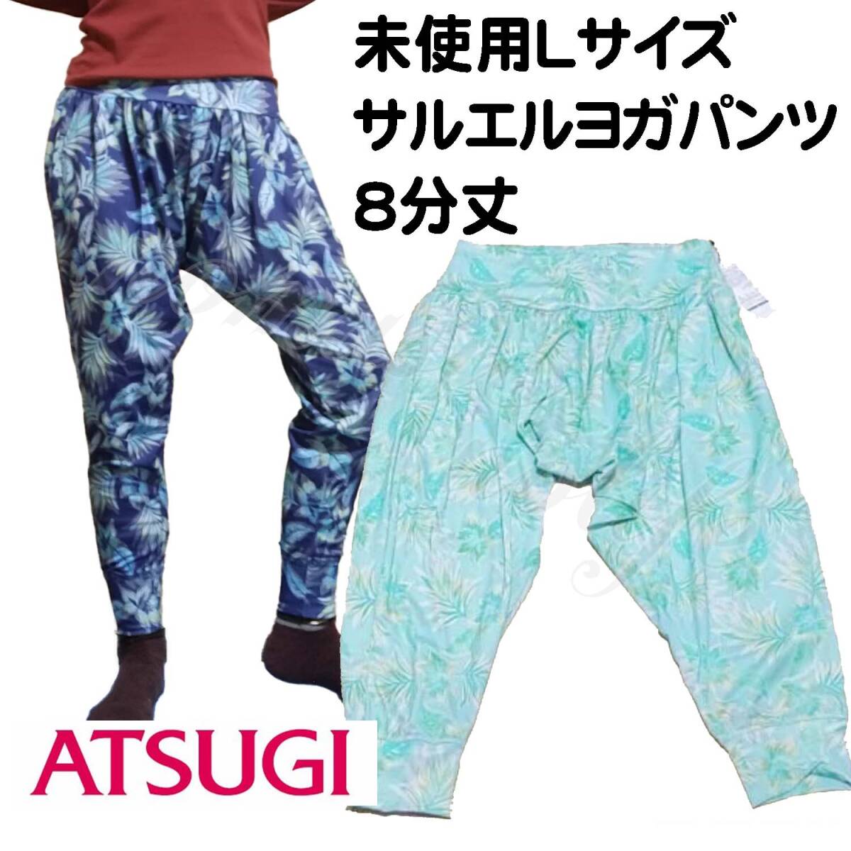 - 【Lサイズ】デパート購入 8分丈 フラワー柄 ヨガ サルエルパンツ iCB ATSUGI グリーン