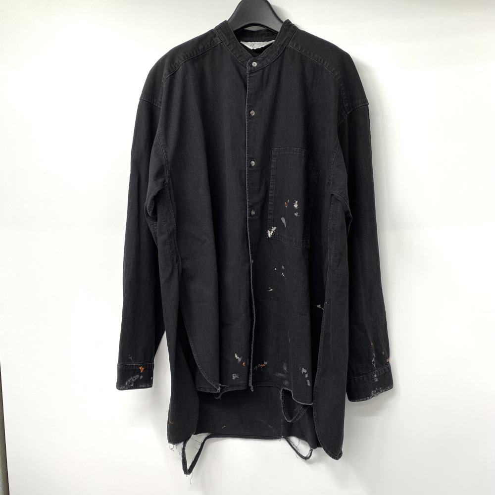 - 【中古】ANCELLM DENIM PAINT LONG SHIRT ブラック ANC-SH25-A サイズ2 デニムシャツ アンセルム[240017688416]