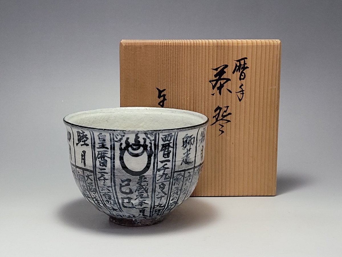 > 京焼 浅見与し三造 暦手茶碗 共箱 幅さ約12cm / 茶碗 茶道具 煎茶道具 茶器 人間国宝 李朝 高麗 唐物 古玩 古董 N2506A_038