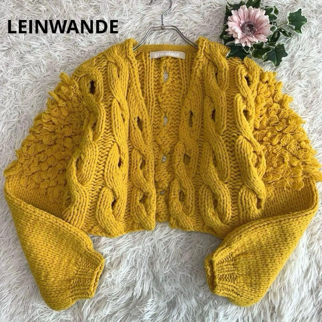 > LEINWANDE【2022年:近年モデル◆ケーブルショートカーディガン】Freesize ニット ウール100% クロップド レディース 22AW ラインヴァンド