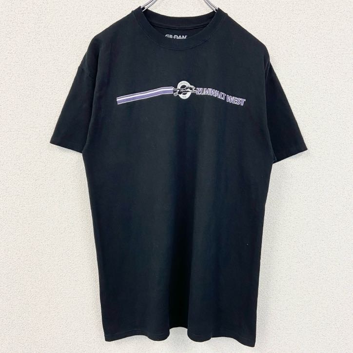 - 古着 used GILDAN 半袖クルーネックTシャツ バックプリント JAGUARS ザムウォルトウエスト 肉球 黒 Mサイズ