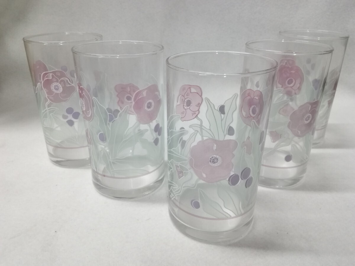 - g_t N945 ☆グラス ガラスコップ タンブラー 花柄 5客 口径6cm/高さ11cm 【長期保管品】