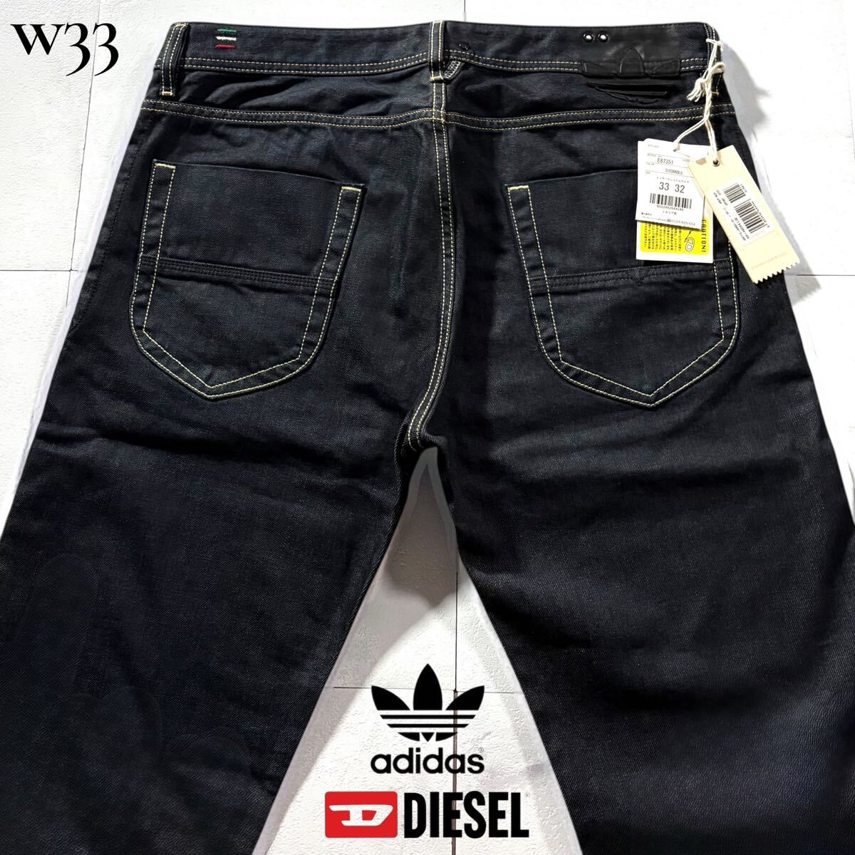 - 新品タグ付/XLサイズ●DIESEL adidas ディーゼル アディダス コラボ別注 デニム ジーンズ ジーパン パンツ 背面レザーロゴ 横ロゴ金具 W33