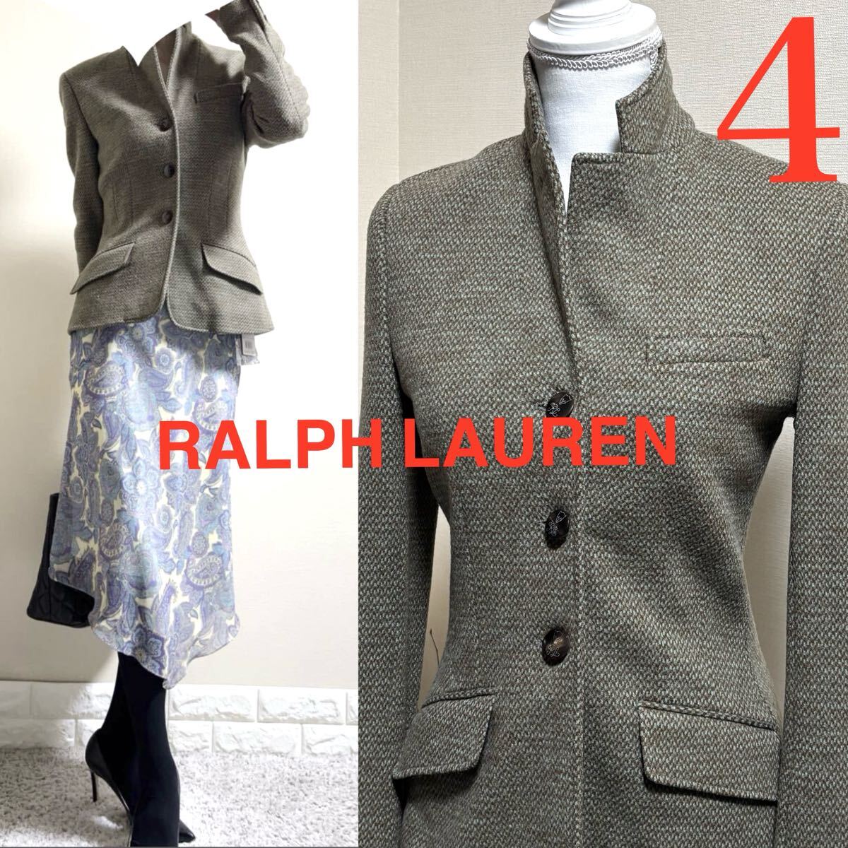 > 美品!希少ボタン ラルフローレン RALPH LAUREN Ralph Lauren ヘリンボーンツイード ウール テーラードジャケット 4 SM グリーン