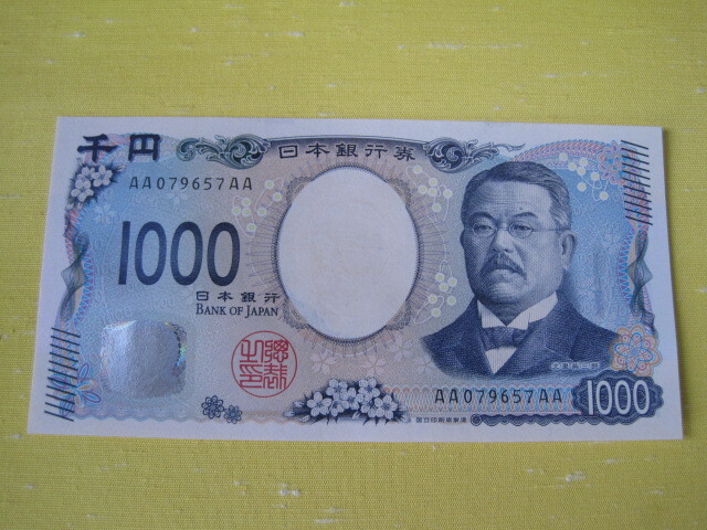 - AA-AA券【AA079657AA】先頭が "0" の超若番 AA-AA券 しかもピン札 新千円札 北里柴三郎 新1000円札