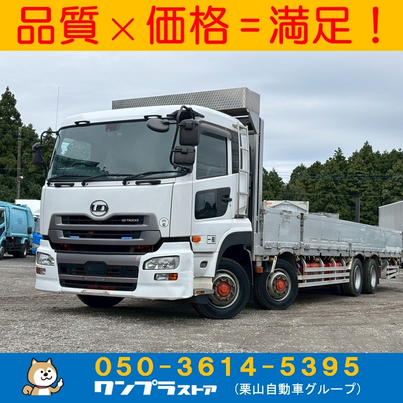 > [91597]車検付き/4軸低床/60アオリ/平アルミブロック/スタンション/オートマ/赤シャシ/積載14トン/安さ世界一に挑戦!