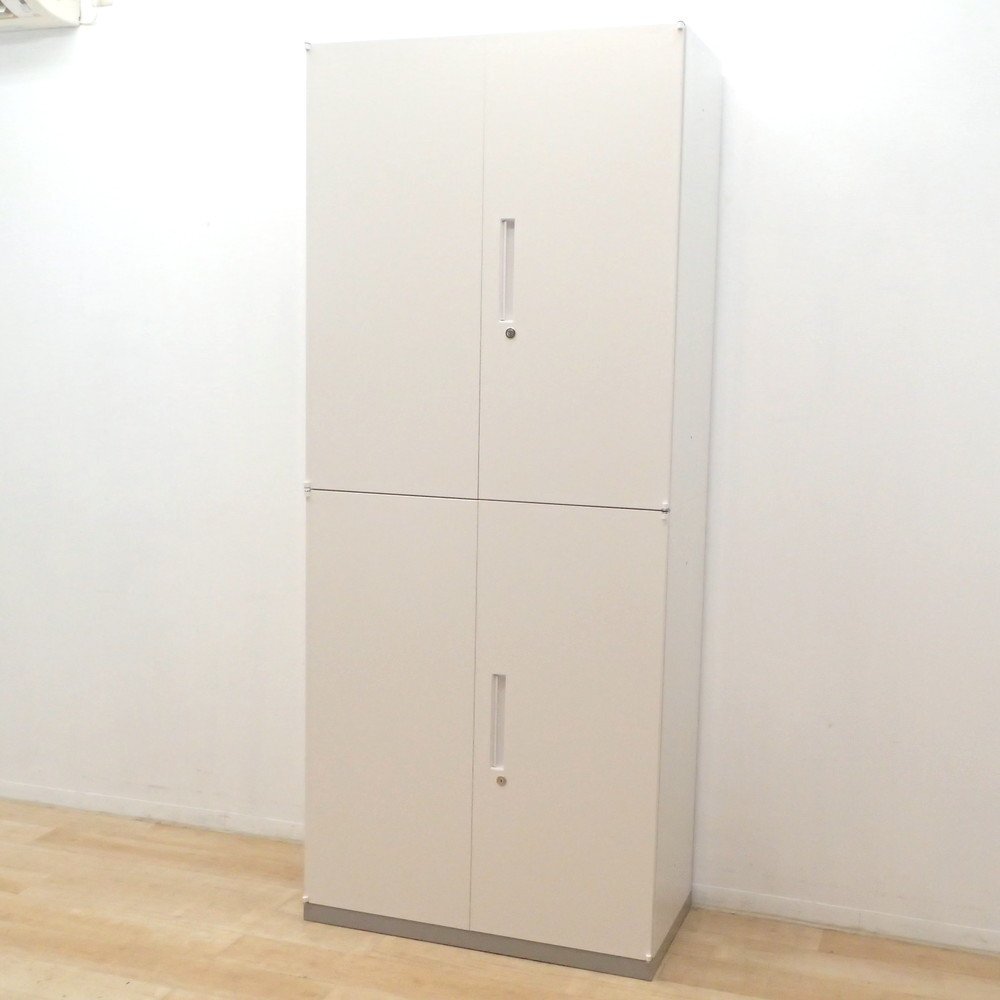 - イナバ Inaba TF 上下書庫セット TF-後板 11 90 OW ホワイト 鍵有り キャビネット 両開き書庫 棚板 収納庫 YH18134 オフィス家具 中古