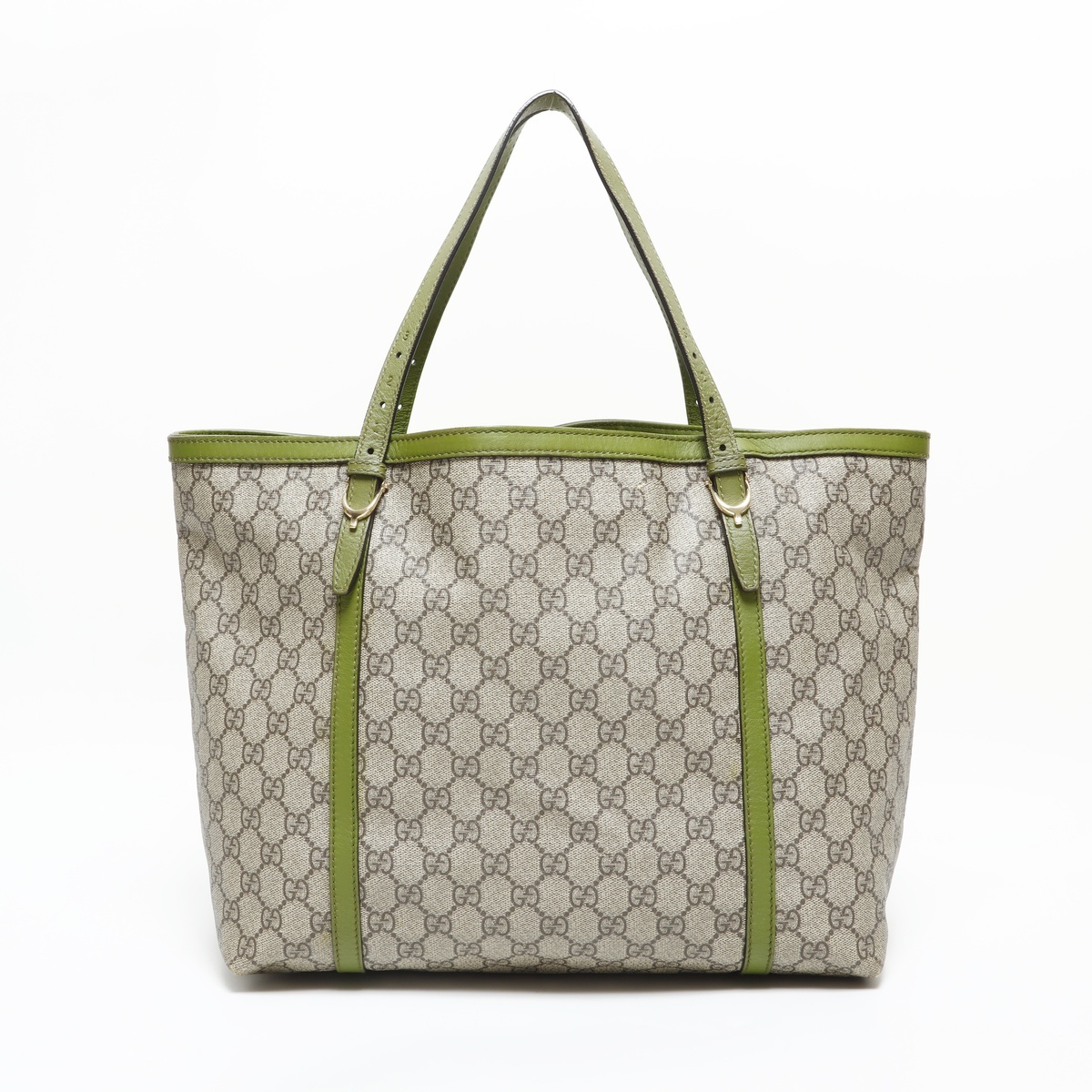 - グッチ GUCCI トートバッグ GGスプリーム グリーン レザー PVC ベージュ