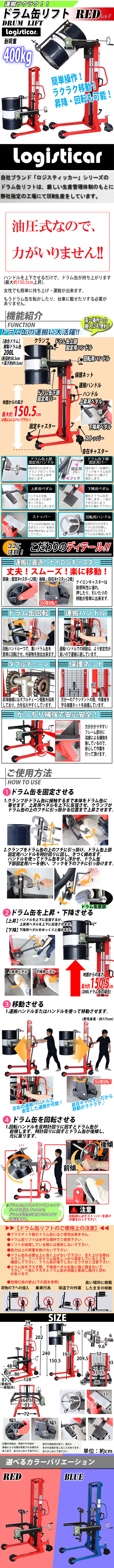 > 新品 ドラム缶リフト 耐荷重400kg 赤 ドラム缶 運搬車 台車 ドラム台車 キャリー ドラムキャリー ドラムリフター
