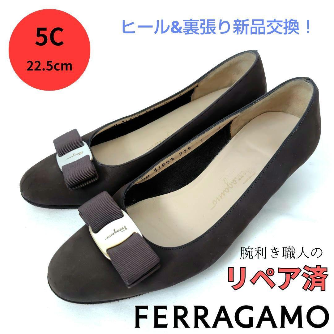 - サルヴァトーレ・フェラガモ【Ferragamo】ヴァラ スエード パンプス 茶色