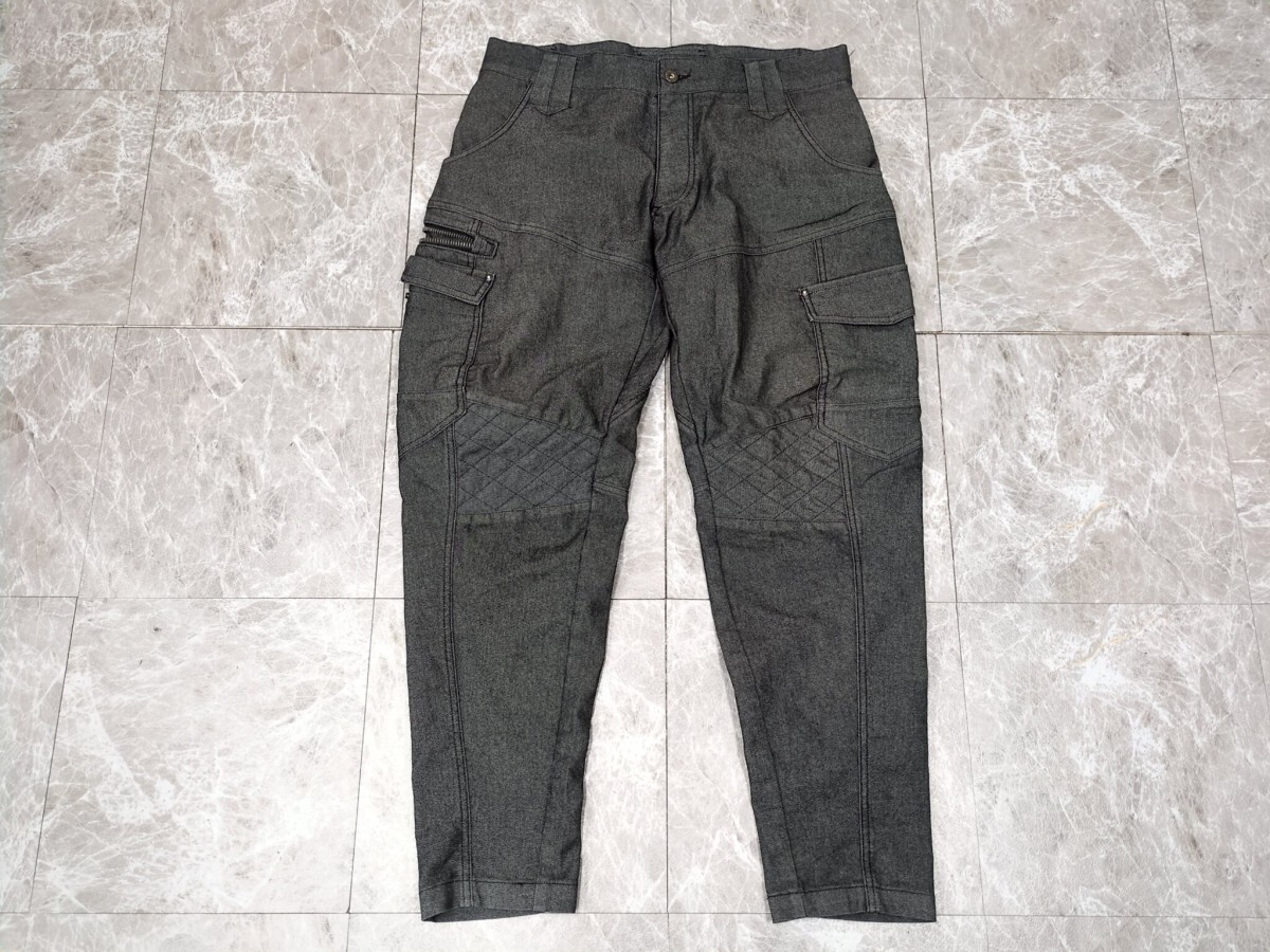 > 15. ワークデニム ワイド テーパード カーゴ パンツ HOOH 鳳皇 ワークウェア 作業着 作業服 サイズL 85cm 黒系白系 y607