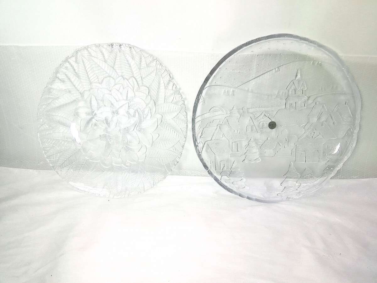 - SOGA GLASS 曽我 未使用 大皿 36cm /花柄 異形皿 2枚セットプレート 飾り皿 盛皿 ⑬