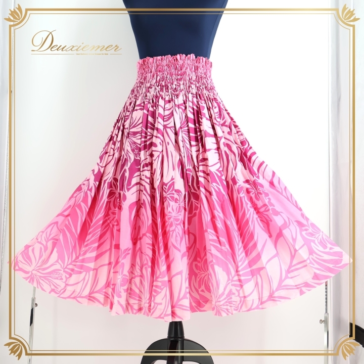 - フラダンス 衣装 パウスカート ピンク系 アロハエミカ シングル モンステラ柄 プルメリア柄 ハイビスカス柄 紫 Aloha Emika パープル系