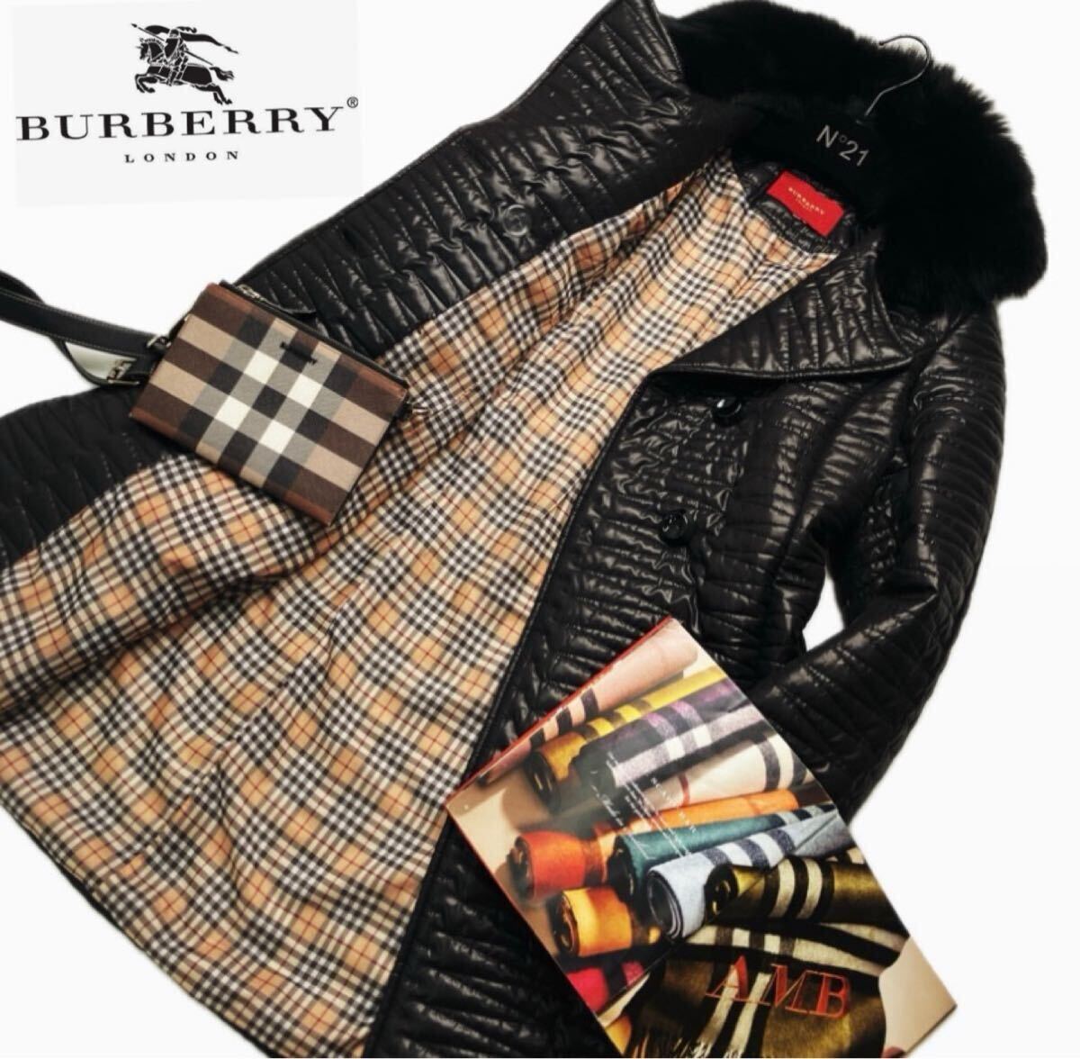 > b5.最高級エレガントファー ノバチェック●参考価格20万●BURBERRY LONDON ロングトレンチコート コート バーバリーコート レディース