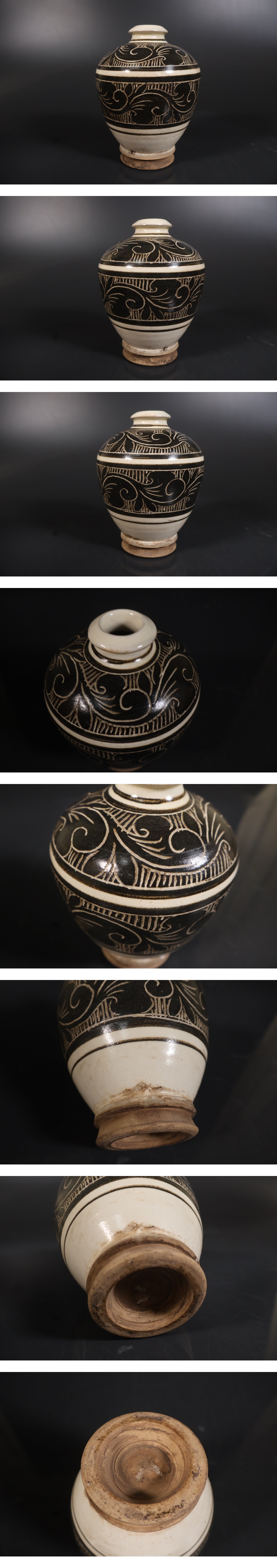 - 【和】(A3621) 時代古作 唐物 磁州窯花文瓶 花瓶 壺 越州窯