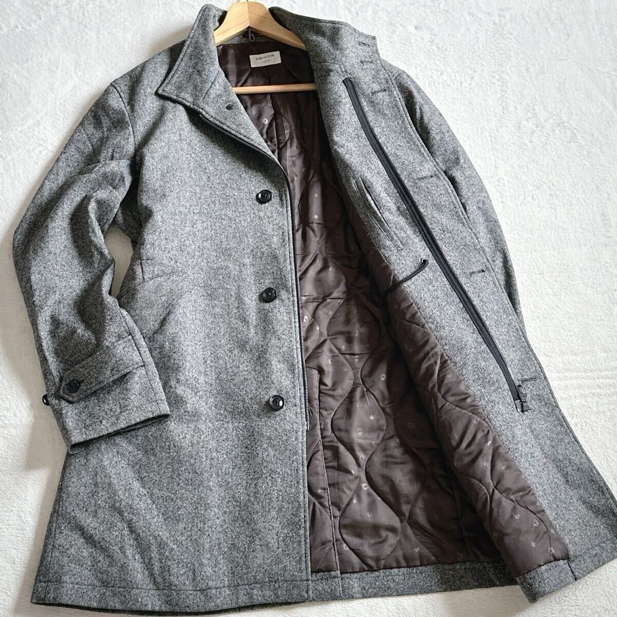 > 希少☆3L【上品な佇まい】ORIHICA オリヒカ ステンカラーコート ロングコート グレー系 キルティングライナー 霜降り 立ち襟 秋冬 メンズ