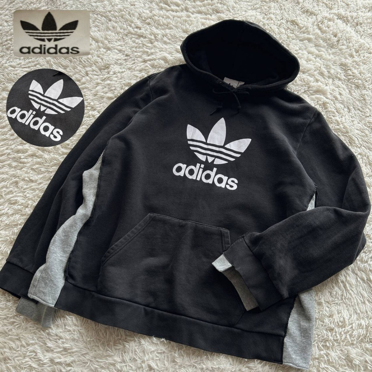 - adidas アディダス 再構築 ドッキング ドルマンスリーブ 変形 太アーム パーカー トレーナー スウェット 古着リメイク ジャージ ナイキ
