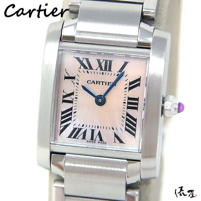> 【国際保証書】カルティエ タンクフランセーズ SM ピンクシェル 極美品 レディース 時計 Cartier 俵屋