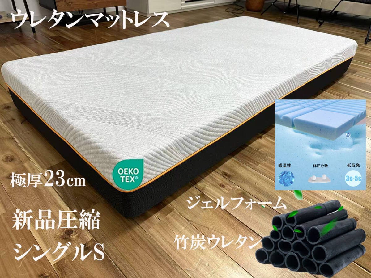- マットレスシングル 23cm ウレタンマットレス 通気 硬め 耐久 竹炭 温度調整 腰痛 体圧分散 エッジサポート 抗菌 消臭 3Dセル敷き布団
