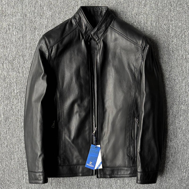 > 数量限定 EU製 DCKMANY 新品 上質羊革 中綿ジャケット イタリアレザー 防寒 本革 メンズ 革ジャン ライダース ラム ブルゾン/黒C9980-2XL
